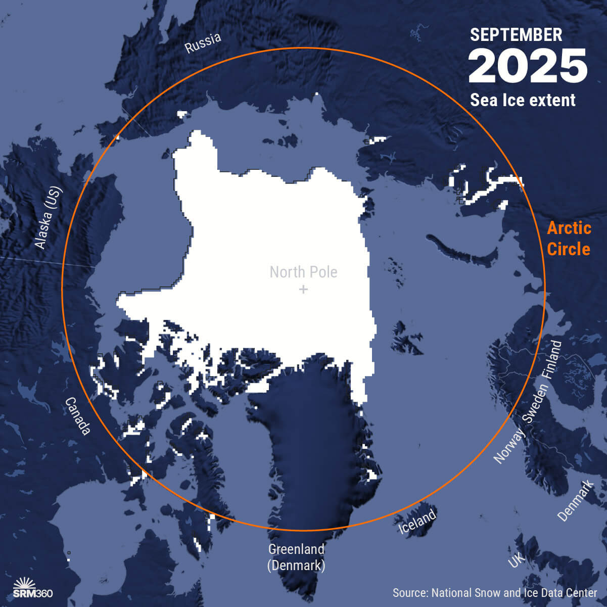 (2025) – "Arctic sea ice extent" [Infographic]. Published online at SRM360.org. Retrieved from: 'https://srm360.org/infographic/arctic-sea-ice-extent/' [Online Resource]